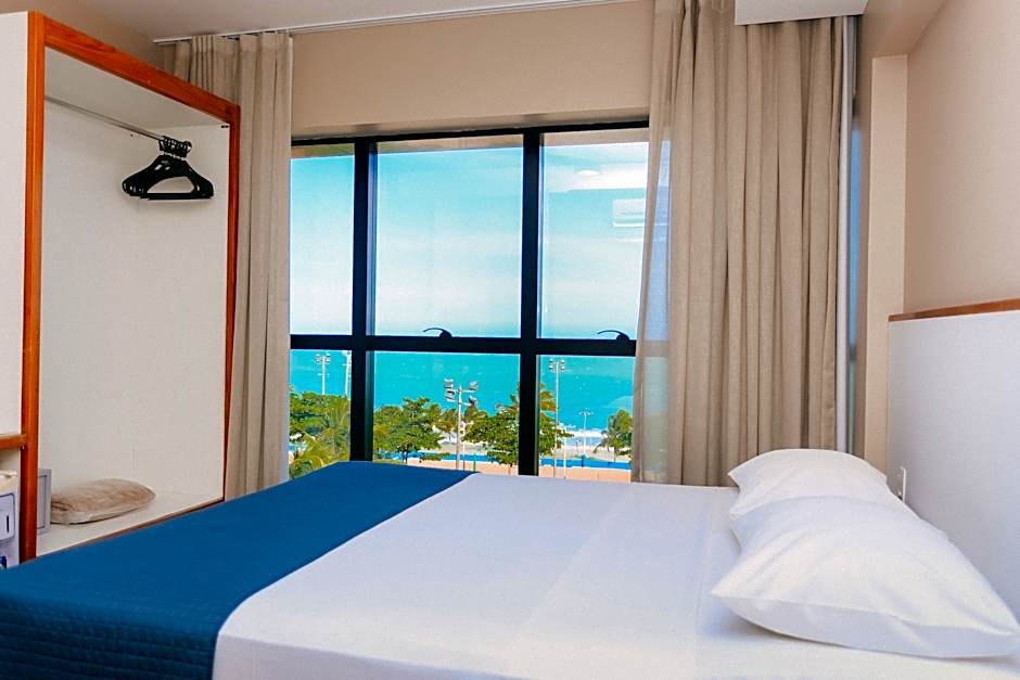 This is a spacious room with a full frontal sea view. It has an LCD TV and a private bathroom with a hairdryer.